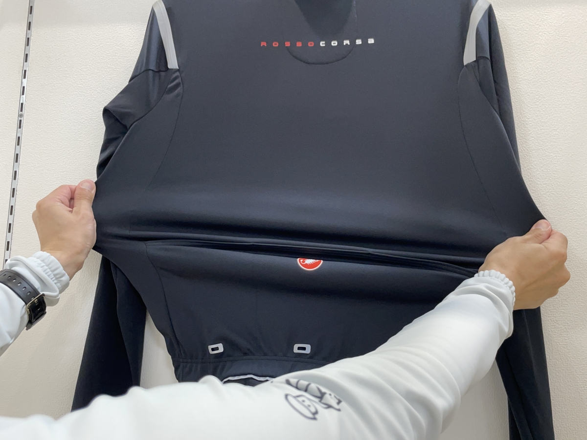 特に、防風・耐水素材を使用しながら、ここまでのストレッチ性がございますので、レースとかで空気抵抗を抑えたい場合に、小さめのサイズでピッタリ着ることも出来ます!