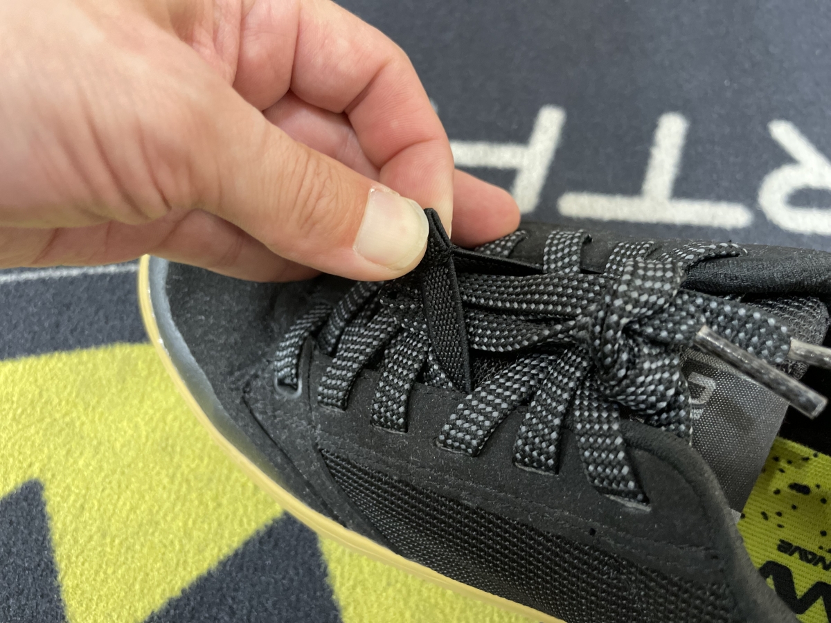 シューレースも、ペダリングの邪魔にならないように、束ねるためのゴムバンドがございます。