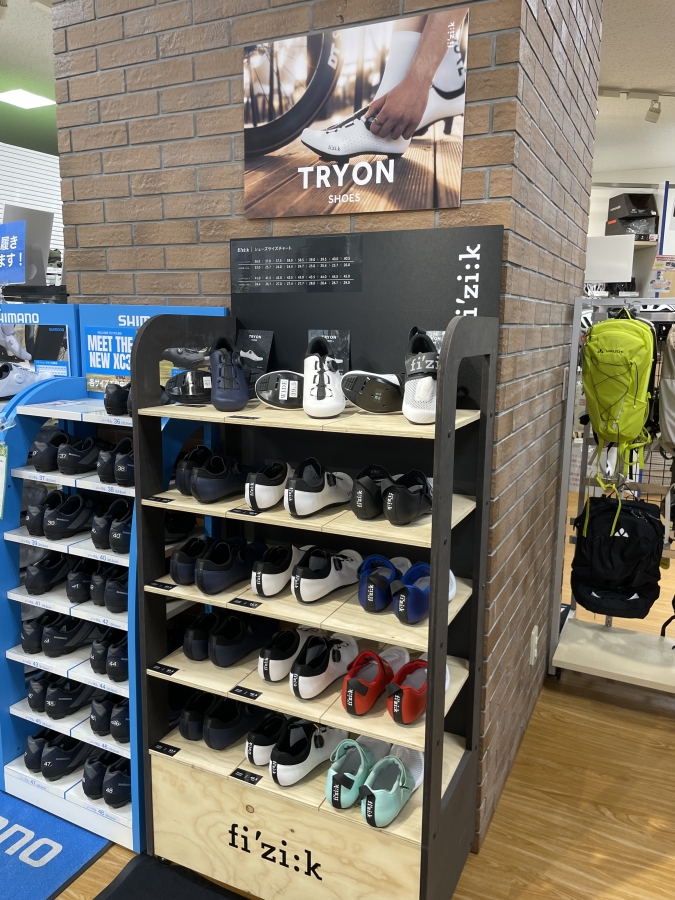 いつでもfi’zi:kシューズの試し履きを気軽に体験していただけるよう、メーカー協力の元、TRY ONコーナーを設置させていただいております!