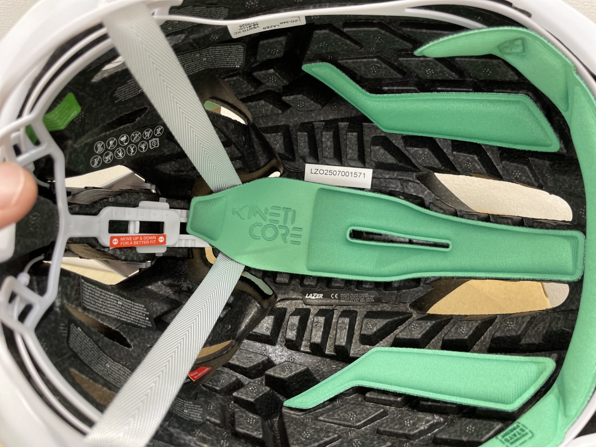 最高峰の安全基準を満たす技術である細かいブロック状のKinetiCoreシステムによって、ヘルメット内部全体を空気が巡れるようになっており、