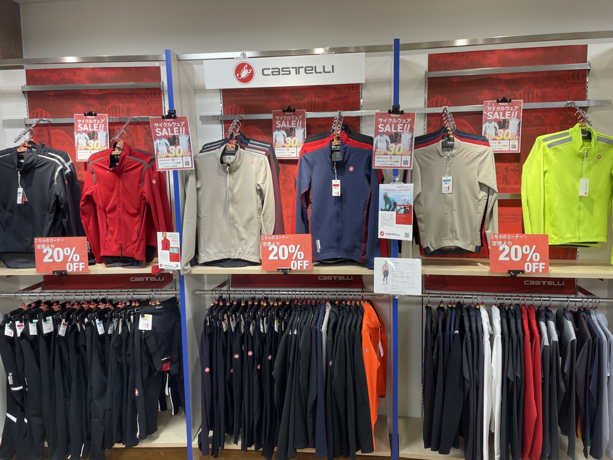 今回ご紹介したジャケットに限らず、高機能なCASTELLIウェアが大量にSALE対象となりましたので、自身の持つパフォーマンスを最大限発揮するための、ストレスの少ない高機能なサイクルウェアをお探しの方は是非!ワイズロード名古屋ウェア館へご来店下さいませ!お待ちしております♪