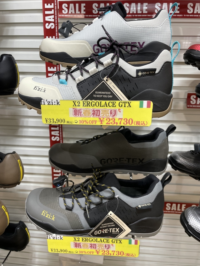 普段使いにもマッチするスニーカータイプのSPDシューズであるERGOLACEに、高い防水透湿性を誇るGORE-TEXを採用し、全天候型のSPDシューズに進化しているこちらのモデルも新春セール対象です!
