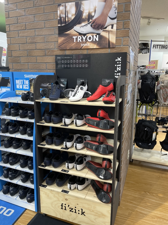 いつでもfi’zi:kシューズの試し履きを気軽に体験していただけるよう、メーカー協力の元、TRY ONコーナーを設置させていただいております!
