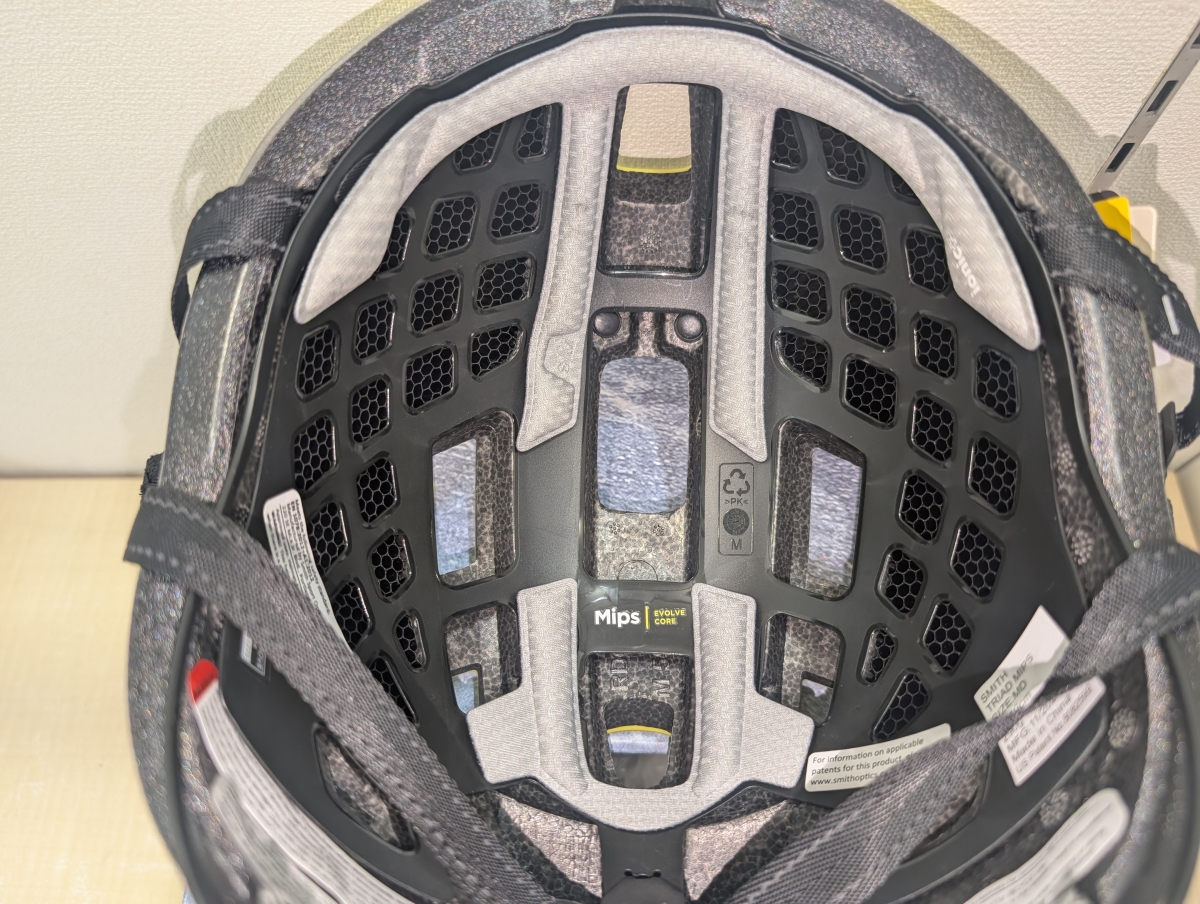 MIPSはヘルメット内側に取り付けられたシート状の部分です。