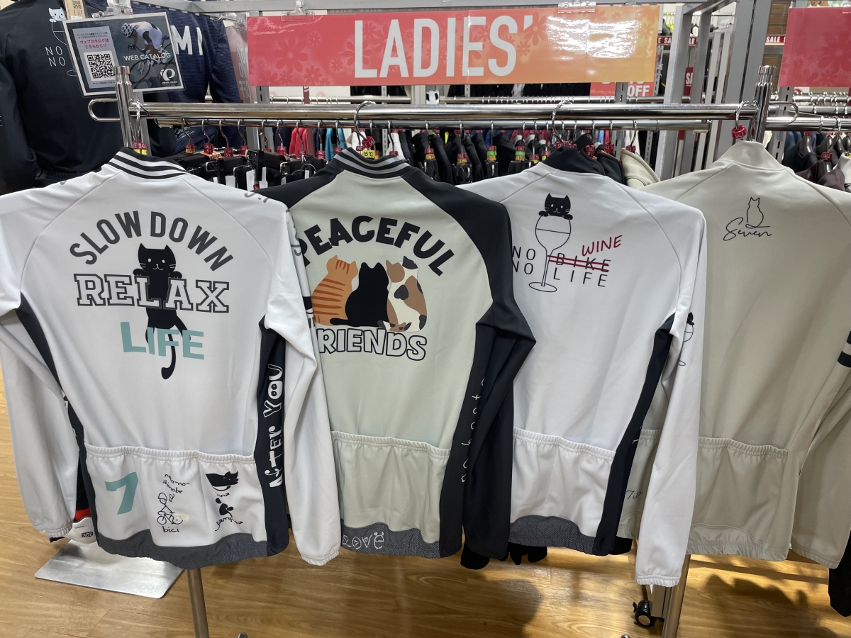 現在、冬物ウェアの最終セール中ですので、ネコデザイン以外にも秋冬ウェアをお探しの方は是非!ワイズロード名古屋ウェア館へご来店下さいませ!お待ちしております♪