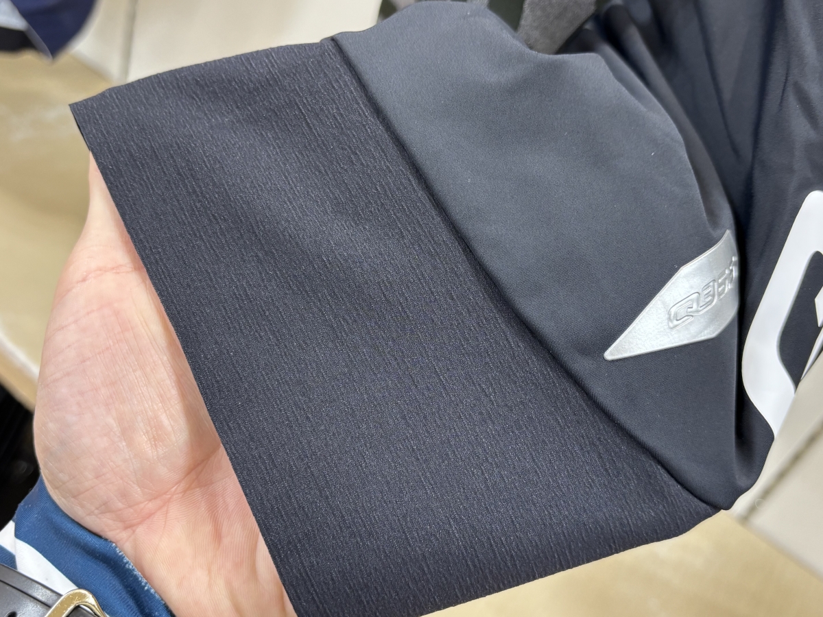 袖裏から脇下へ向かってのサイド部分にジャージ内で最もストレッチ性の高い素材を採用し、高いフィット感と長時間の着用でも高い快適性を発揮できるようになっています!
