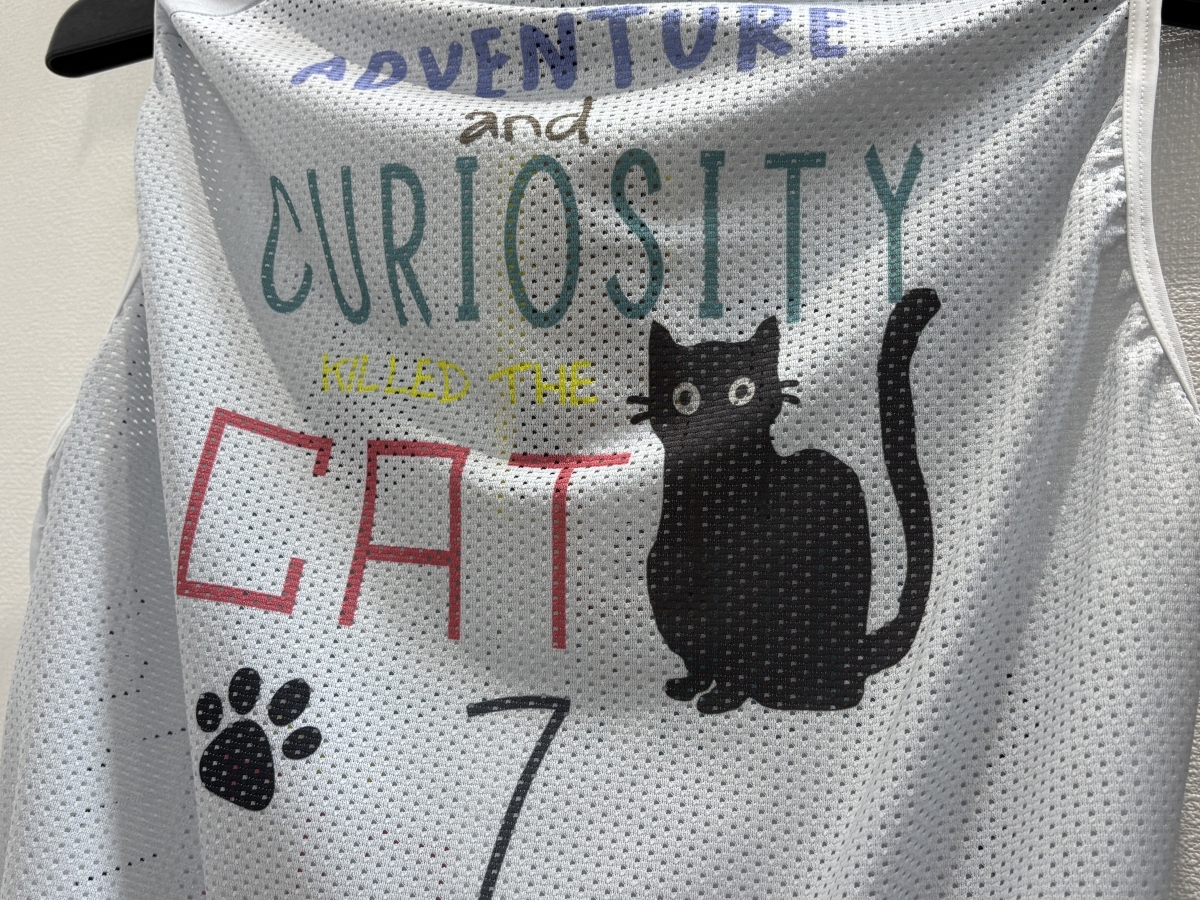 サイクリストの冒険心と好奇心をメッセージで描きながら、駆け出したくなるのを我慢していそうなお座りネコちゃんのオフホワイトカラー!