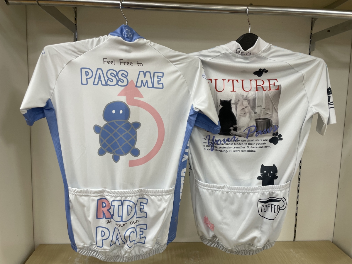 7ITAのデザインは、写真で見るよりも実物の方が発色が良く、パステルカラーの絶妙な色合いはぜひ店頭で確認していただきたいポイントです。サイズ感や、お手持ちのタイツとのコーディネートなど、お困りの際はお気軽にスタッフまでお声がけください。今年の春は、最高に可愛いジャージで街へ、山へ、走り出しませんか?ワイズロード名古屋クロスバイク館にて、皆様のご来店を心よりお待ちしております!