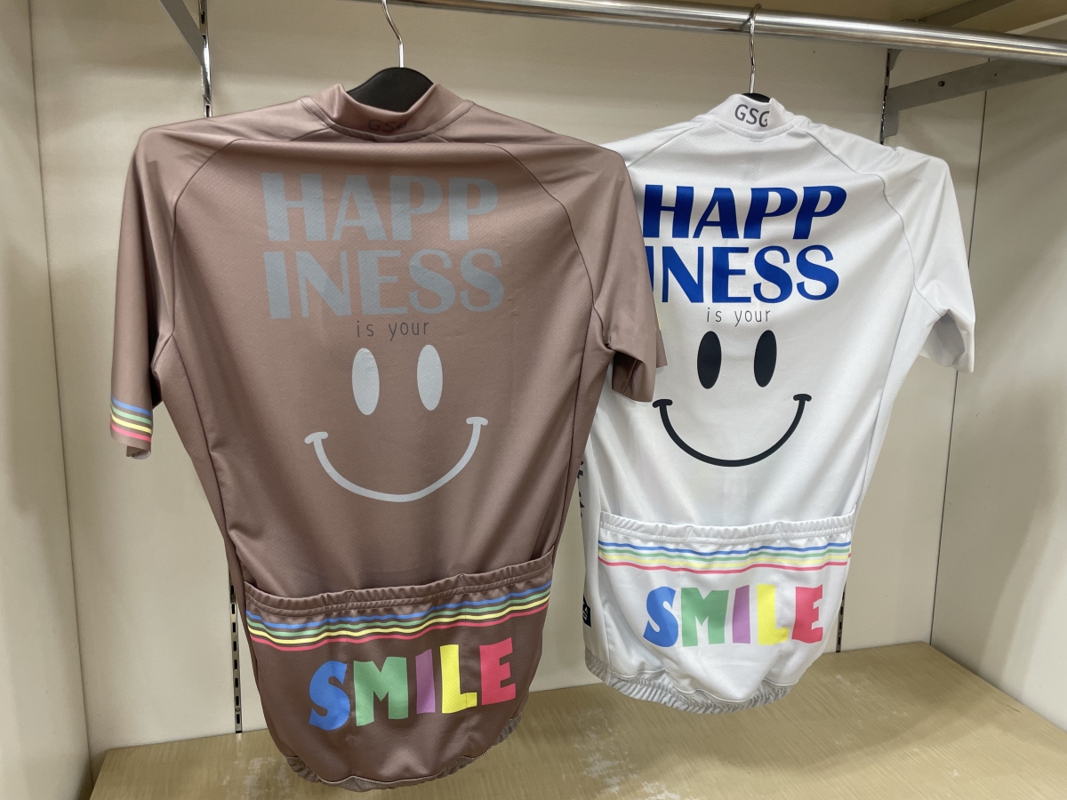 まず目を引くのが、大きなスマイルマークが印象的なシリーズです。「YOU make me SMILE」のメッセージ通り、一緒に走る仲間や、すれ違うサイクリストまで笑顔にしてしまいそうなポジティブなデザイン。