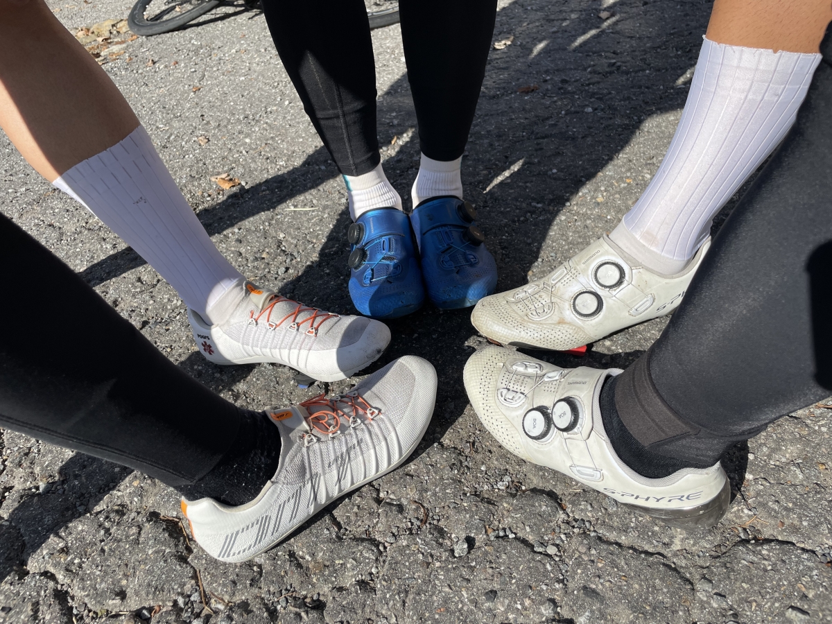 実は、昨年にスタッフでサイクリングに出かけたときに履いていたシューズがRC9とPOGI’Sだけだったという時があり、RC9を私と、マウンテンカテゴリーで海外遠征経験者と、現役E1レーサー(現在は国内プロ選手)の3人。