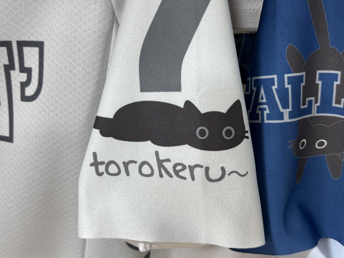 先ほどの私の心情を映している、torokeru(とろける)ネコちゃんは、左袖とバックポケットに。