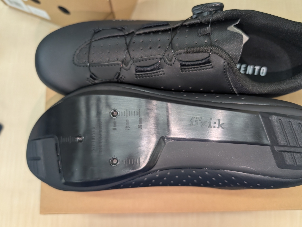 クリート位置はやや後方へのポジショニングで、ペダリング効率を最適化しつつ、膝へのダメージを最小限に抑えます。