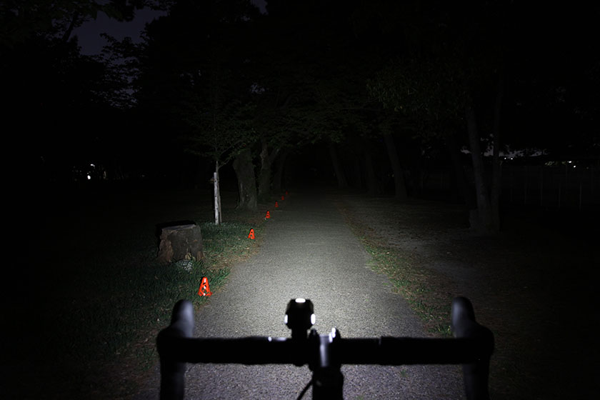 ハイモードでは下のように道を照らしてくれます。街灯がない道でもかなり明るく照らしてくれるので、安心ですね!