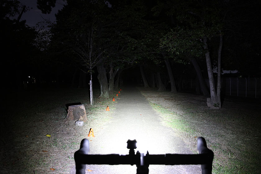 周りに明かりがなくても、遠くまで照らしてくれるので、夜でも安全に走行できます!