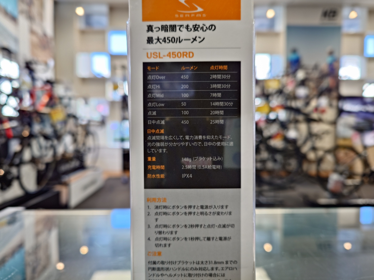 100ルーメンで7時間はかなり心強いです。450で使う瞬間はそう多くはないですが、月明かりがある夜道では100ルーメンでも間に合う日が多く、200あれば大体見えます。かなり暗いトンネルに入った瞬間は目が慣れないので450を使うという時はあるとは思います。
