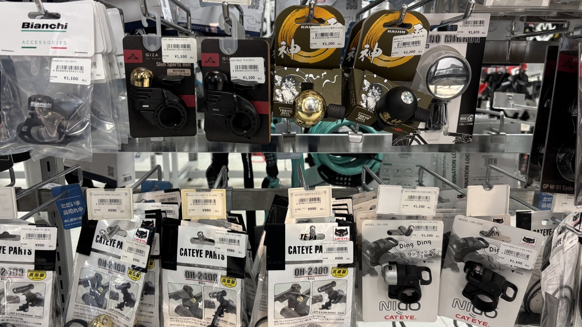結構いろんな種類があります。小さめで目立たない物から、爆音が鳴るベルまで、いろいろです。(むやみに鳴らすのは法令違反です)
