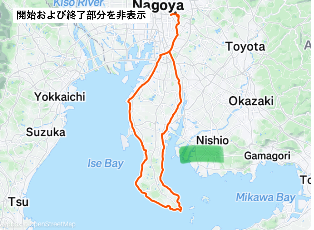 名古屋市を抜け、東海市に入ります。途中、新舞子マリンパークというところを通ります。ここは道も良く、車も少なく、距離も長すぎないのでスプリントするのには最適です。(もちろん、安全には最大限気を付けます。)その感想は、