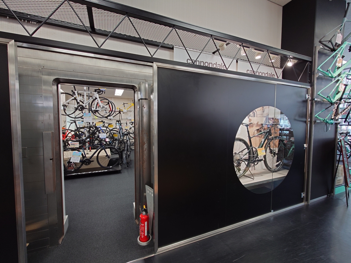 金庫室(元銀行の建物)に入ると、トレックではなくキャノンデール、BRIDGESTONEアンカー、BMC、そしてORBEAのコーナーに。