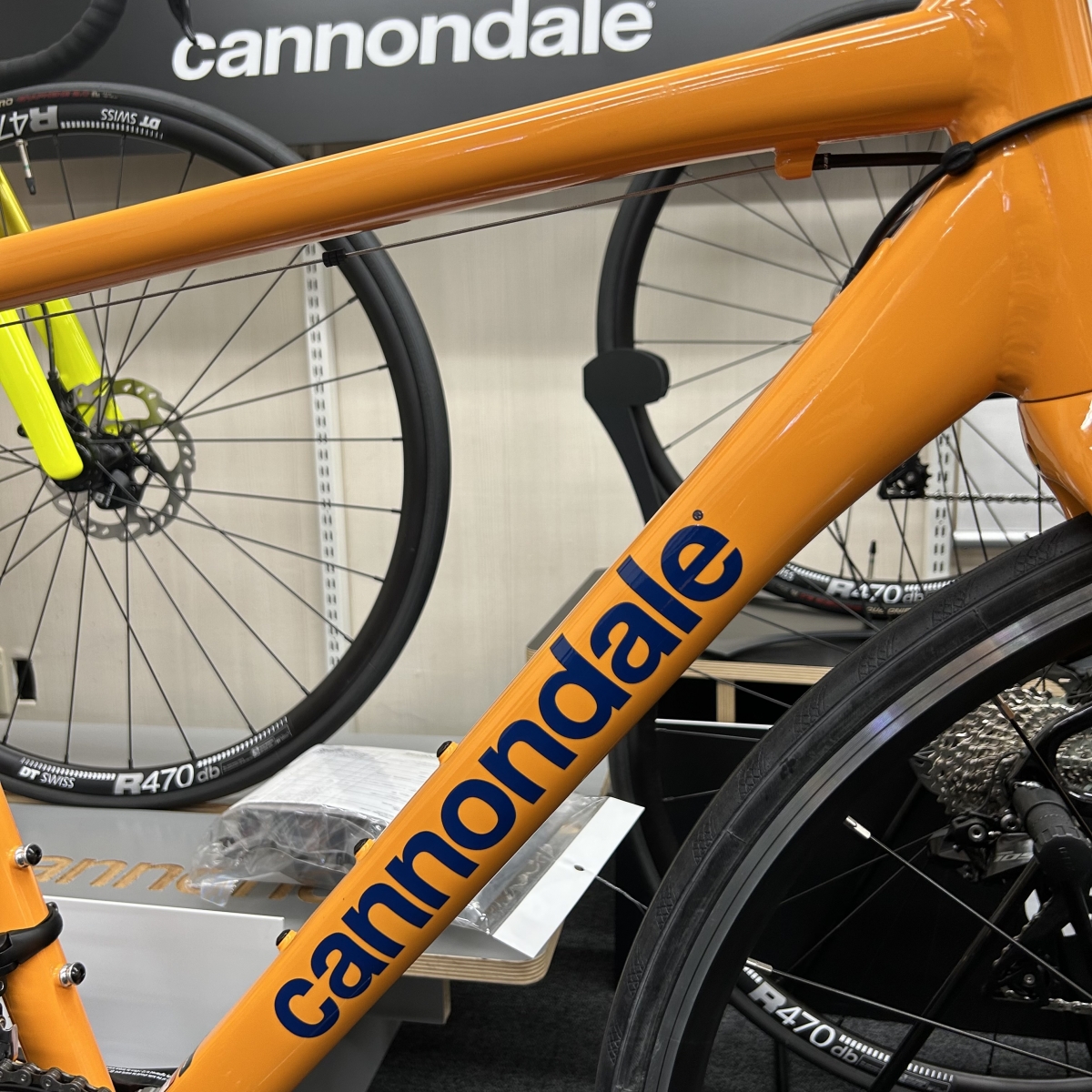 なかなかオレンジのロードバイクなんて見かけませんが、まさにオレンジ/ブルーのバイクが店頭に並んでいるではありませんか!