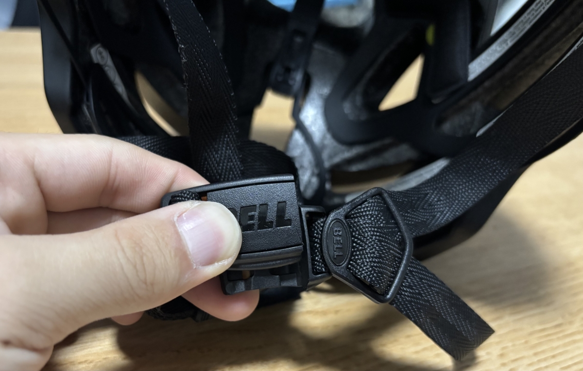あごひものバックルの部分がよくある差し込むタイプのモノじゃないんです。ここにfidlockが使われているようです。
