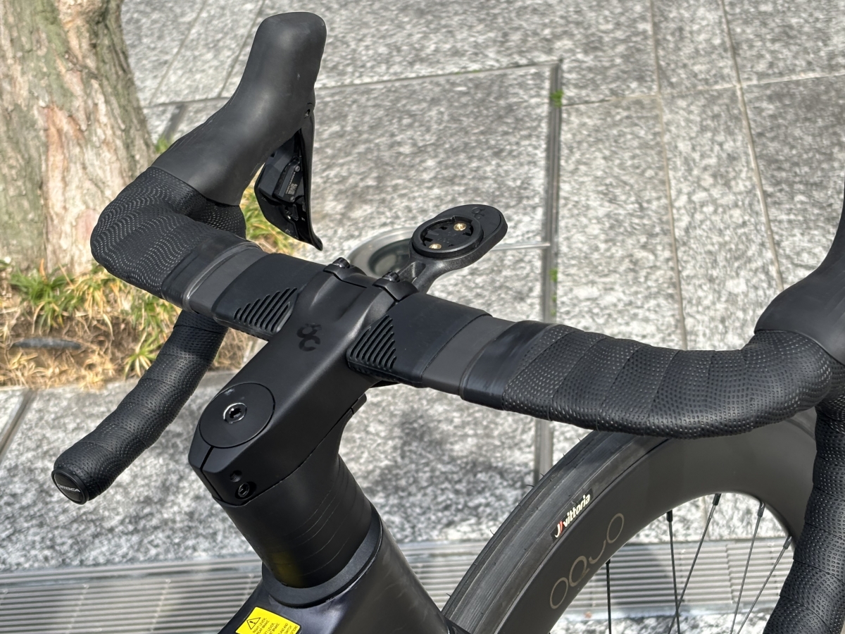 ハンドルもエアロ、ステム別体ですがシリコンカバーのおかげで空力は非常に高いです。