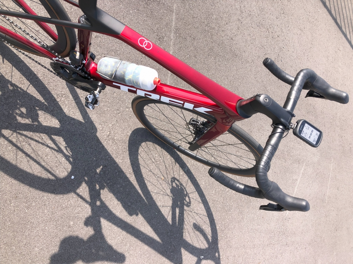 このMADONE SL6 Sサイズのクランクは165mm。前回は同じサドル高で走りましたが(いつもは170mmクランク)、若干違和感があったのを覚えていたので、今回は10mmほどサドル高を上げて試してみました。その感覚がまた面白かった!前回よりもかなりペダリングしやすくなり、気持ちの良い感覚で回せるようになっていた。そうなってくるとドンドン欲が出てきて、次回はもう10mm上げてみて試そうと思っています。またお借りしますね!