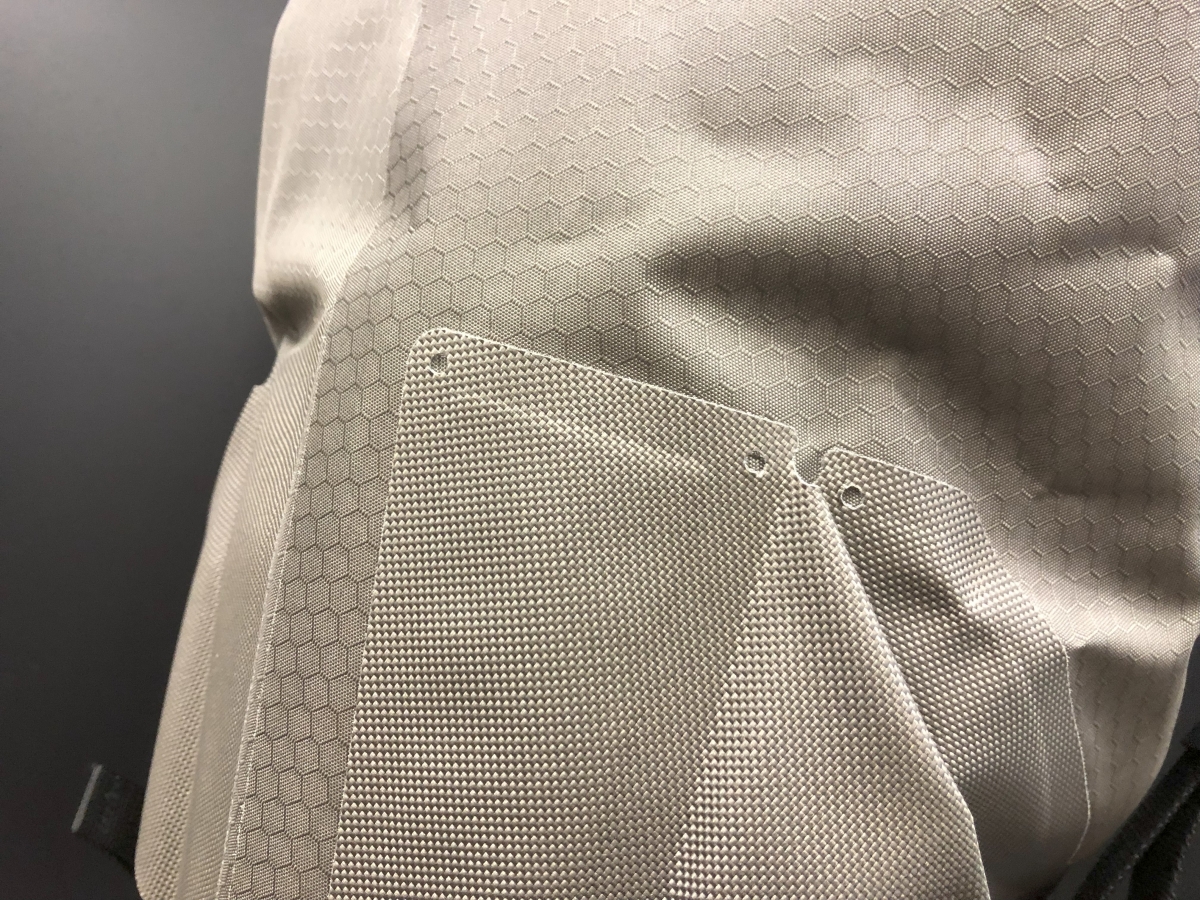容量は11リットル(345g)と16.5リットル(456g)があります。生地のほとんどを圧着で固定し、防水性と軽量化を成功。
