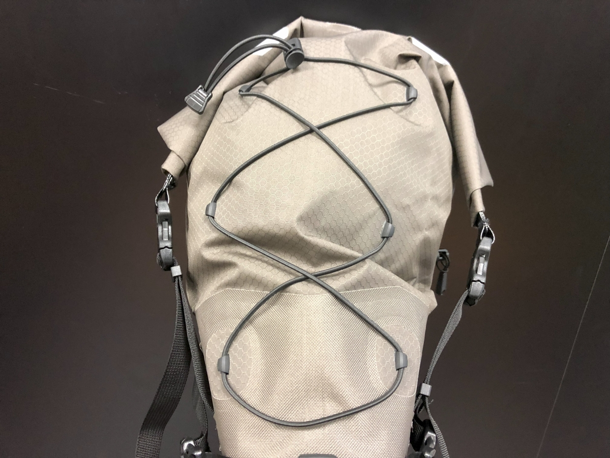 さらにバッグ上部に取り付けられたバンジーコードで入りきらなかった荷物や濡れたものを乾かしたりできます。