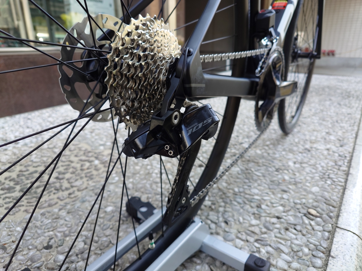 リアが12枚あるので、ロー側のギアがとても軽く、急な上り坂でも対応できる羨ましい嬉しい仕様。