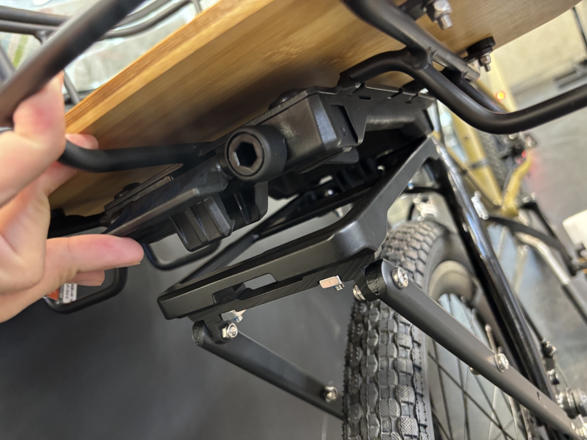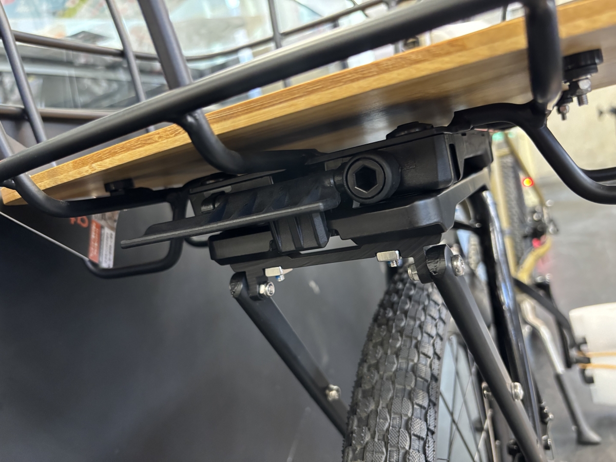 キャリアとカゴがニコイチで専用アタッチメントでワンタッチ着脱が可能