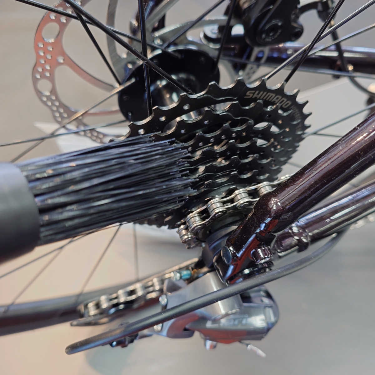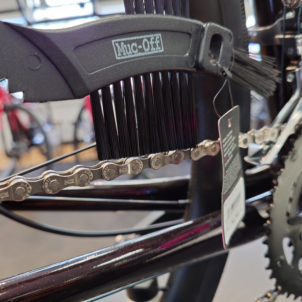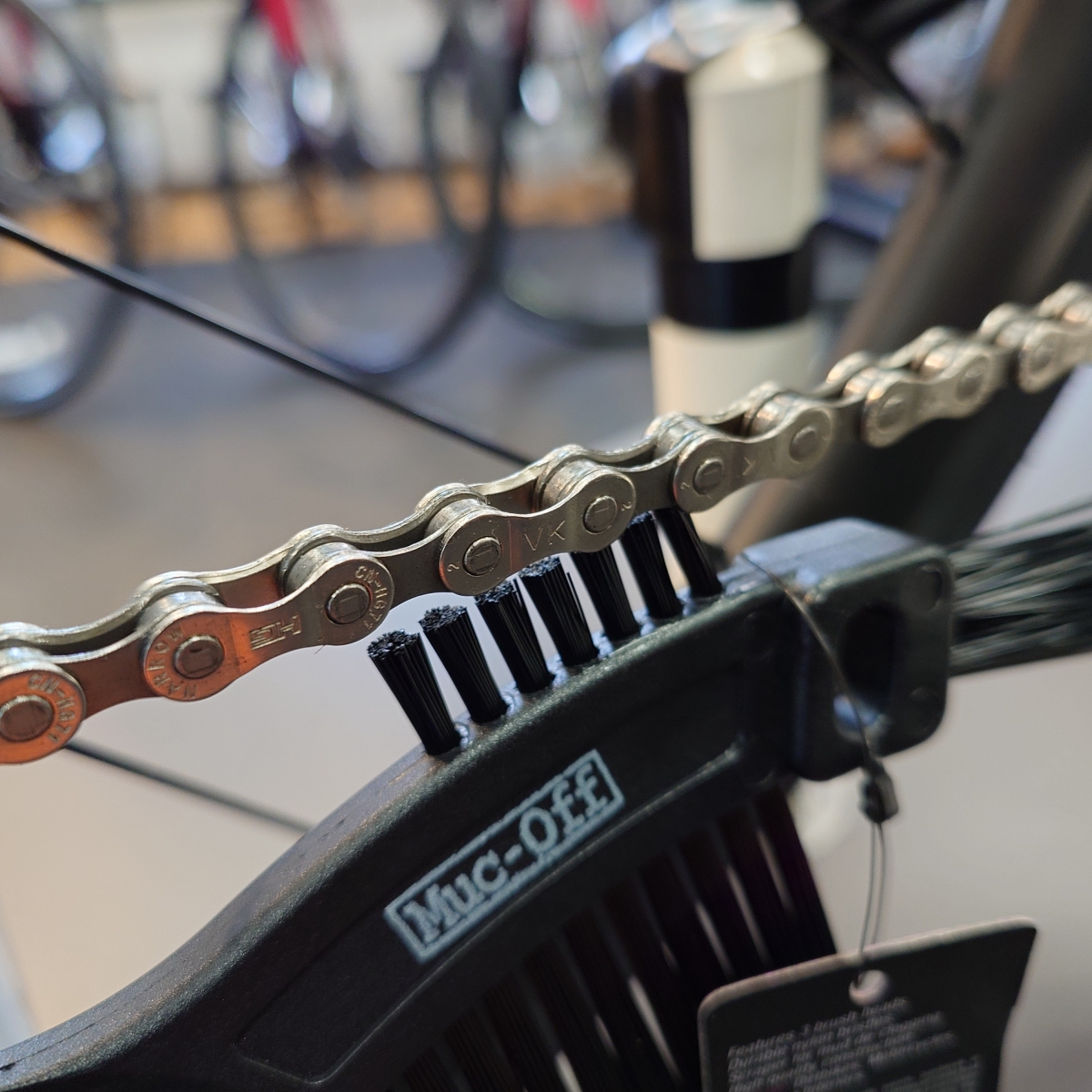 特にチェーンのコマは意識してブラッシングしてください。コマが回ることで、内部の泥汚れや金属粉が取り除けます。