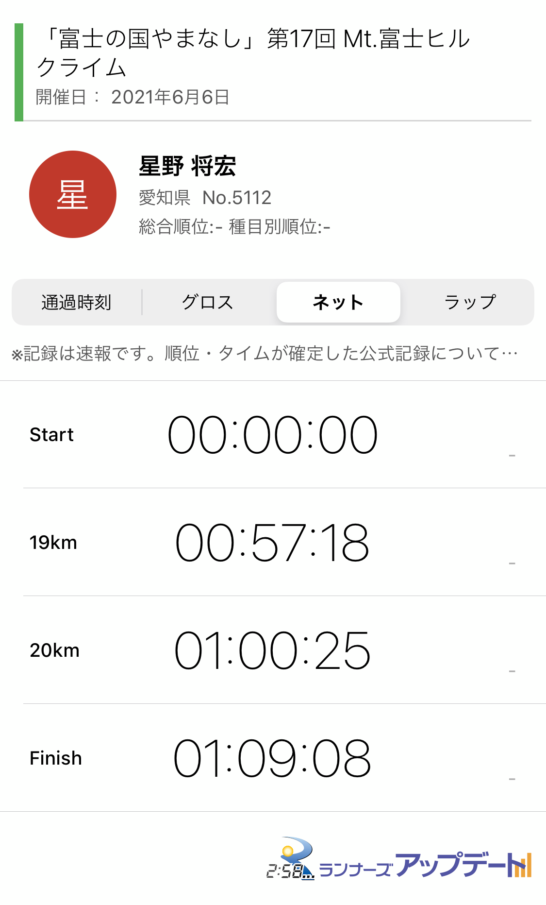 ホッシーは2021年に出場しまして、1時間09分08秒でシルバーフィニッシャーリングをゲットしました。