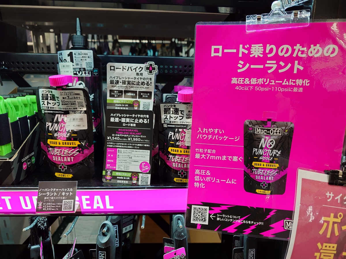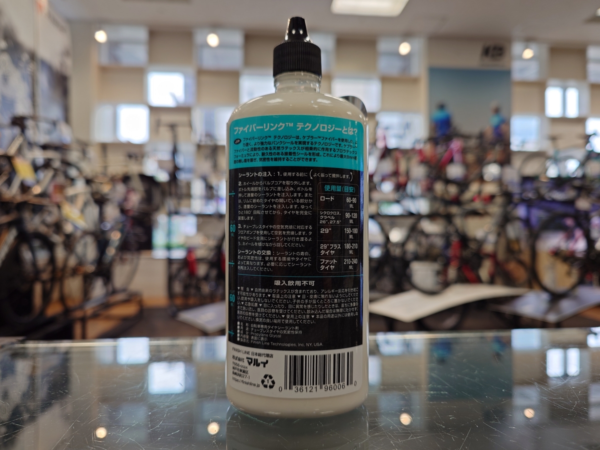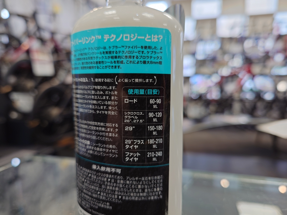 ロードは60~90mlとのこと。8mmを塞ぐわけですから、入れる量はちょっと多めでしょうか。とはいえ、昨今のロードタイヤも28~32mmが多くなってきているので、この辺りのサイズで90mlと言っているのかも知れませんね。