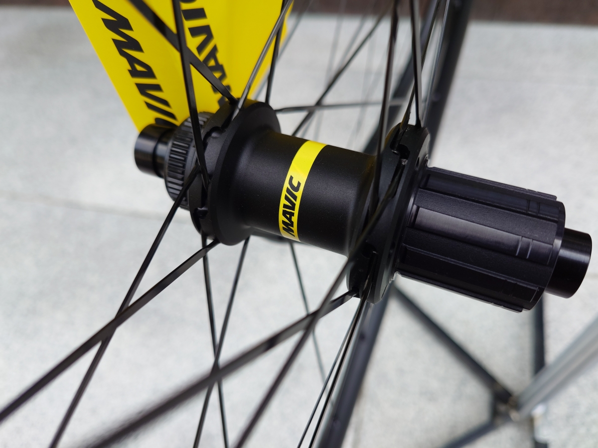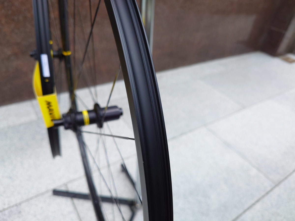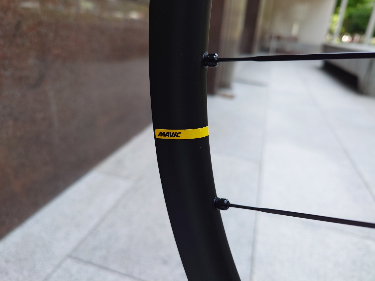真っ黒でスルっとした丸みのあるリムに一カ所だけマヴィックの黄色いラインとロゴ。