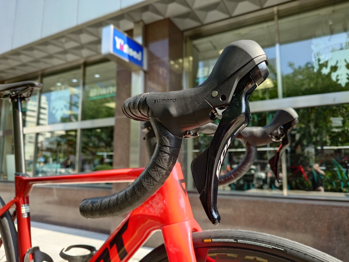 最新12速105に、アルミではありますがリムハイトのあるホイール。リム内幅は比較的広い21C。最大タイヤクリアランスは30mmまでです。