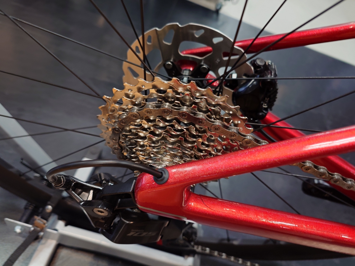 非常にロードバイク然とした風貌の車体です。レースにバッチリ合いますが、オールラウンダーなのでホイールやタイヤ幅の工夫でロングライドもバッチリ行けます。