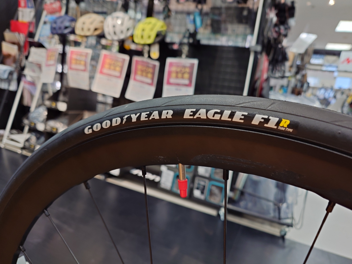 店頭で用意できたフルクラムのアルミホイールに、EAGLE F1R 25Cをインストール。