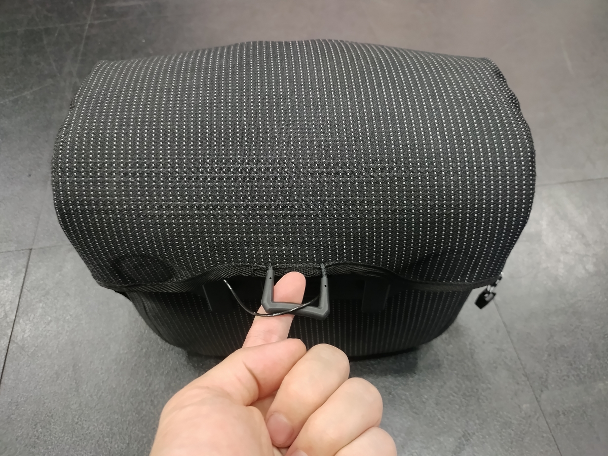 専用のアタッチメントを用いハンドルに装着するタイプのフロントバッグとなっており、ワンタッチで着脱が可能です。