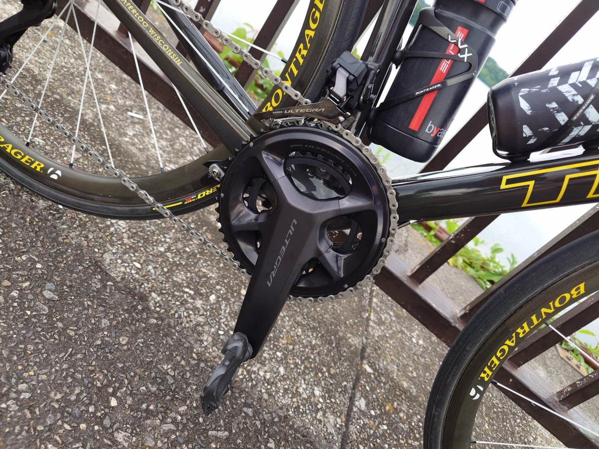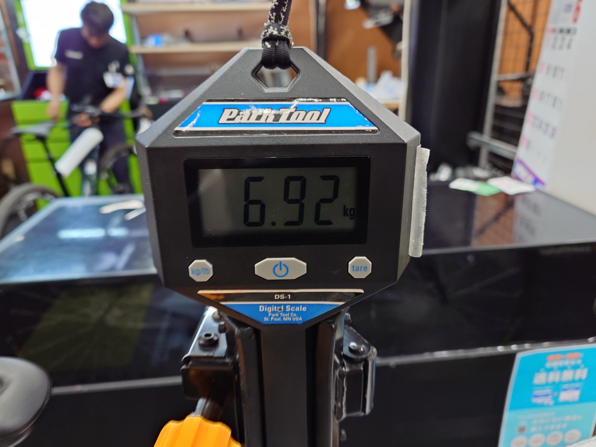 実重量はちょっと増えました。以前は同じ装備で6.5~6.7kgくらいでしたが、バッテリー増加、クランクがデュラからアルテへと変更があり、微増。