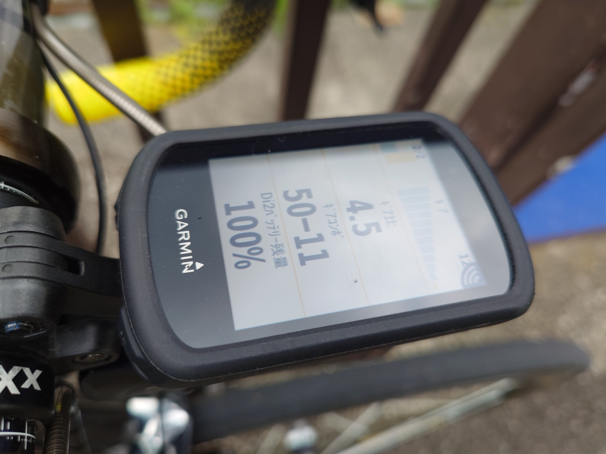 手元のEDGE830ではDI2と同期して、ギアポジションやギア比、バッテリー残量の確認ができます。