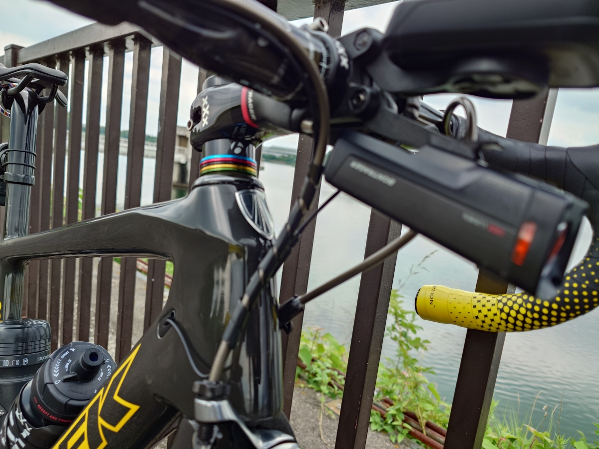 なお、ブラケットが超ちっちゃくなったので、握りやすくてここにも感動。リーチが多少変わったのかポジションに違和感残っているので、あとで微調整ですかね。