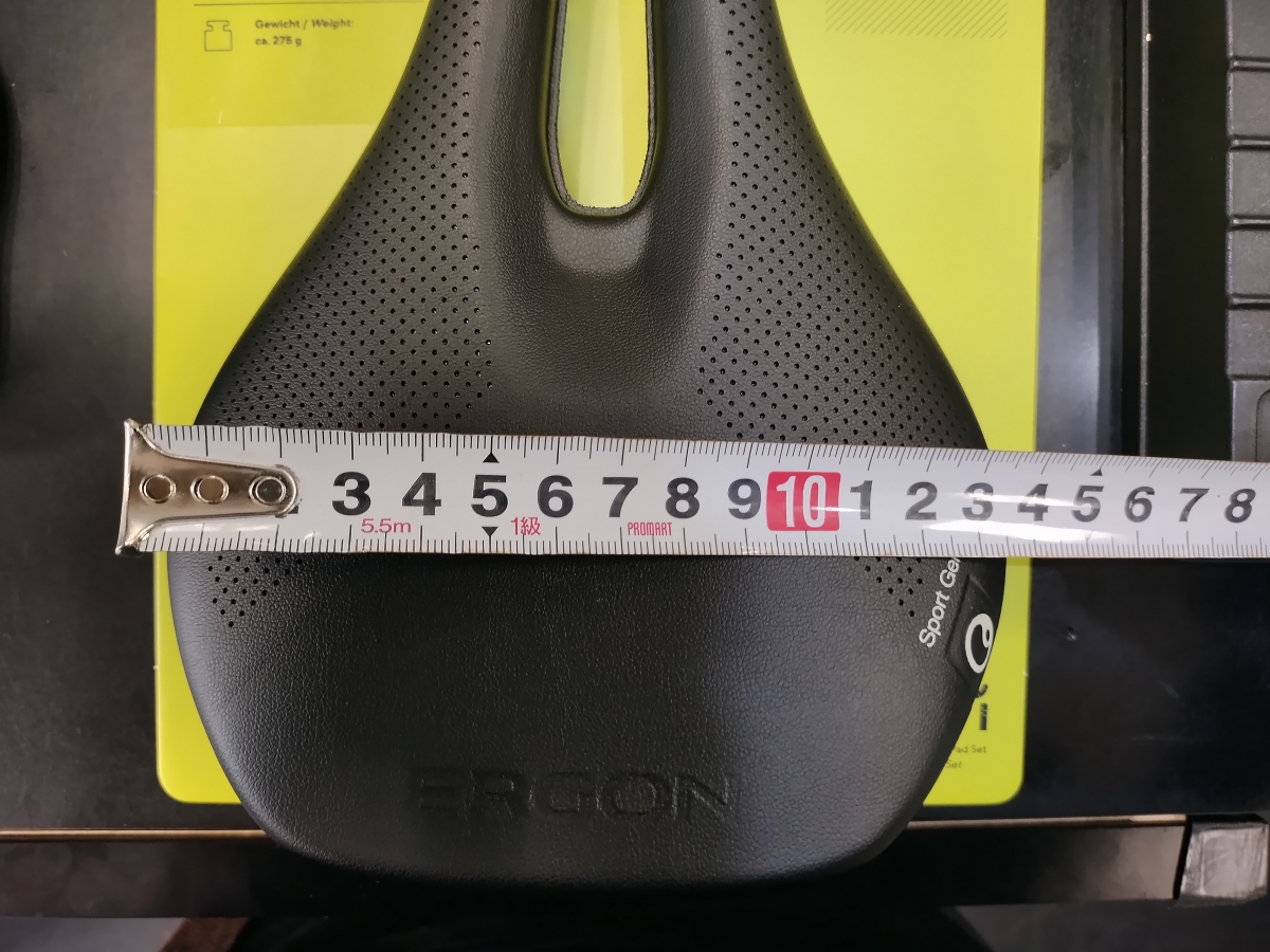 完成車に付いてくるサドル幅との差は目測1.5㎝程度差があります。