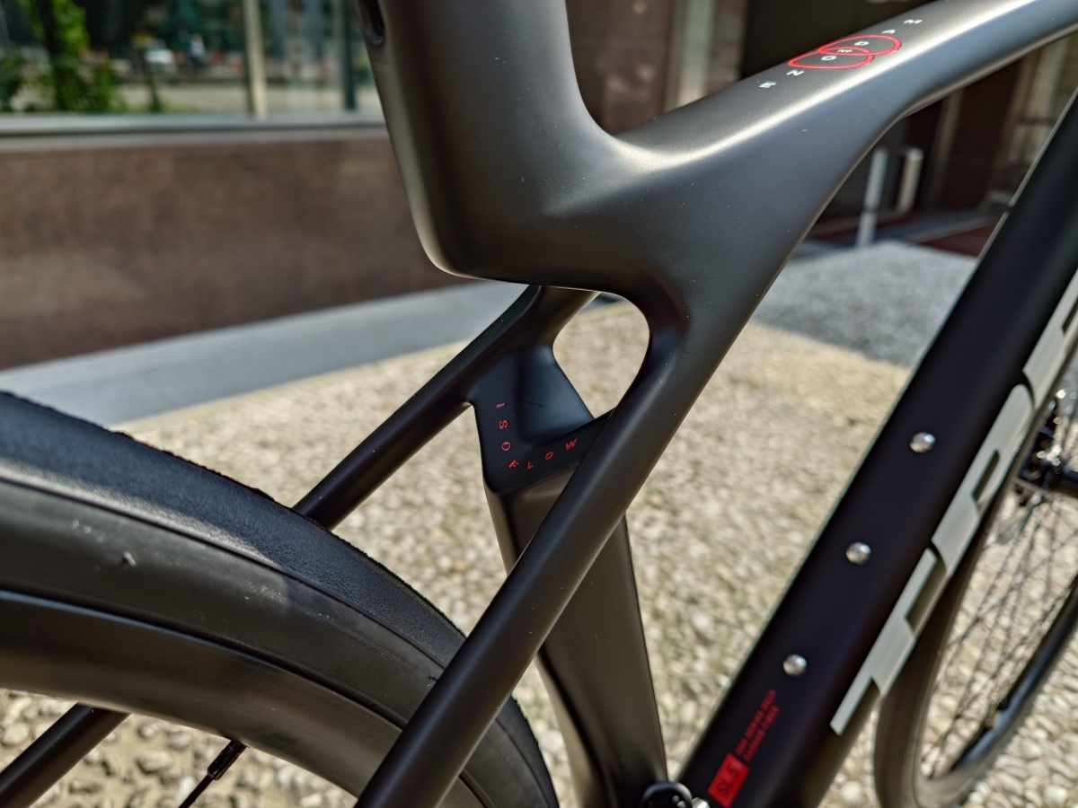〇が二つ重なって8に見えるモノグラムというかピクトグラムというか。トレックはこういうのが好きです。GEN8だけじゃなくGEN7でも7に見えるロゴがありましたし、その他のモデルでもその車体の特徴やメッセージを記したものがどこかにあるので、探すのが毎回楽しいです。トレック社のアメリカンジョーク的な試みです。
