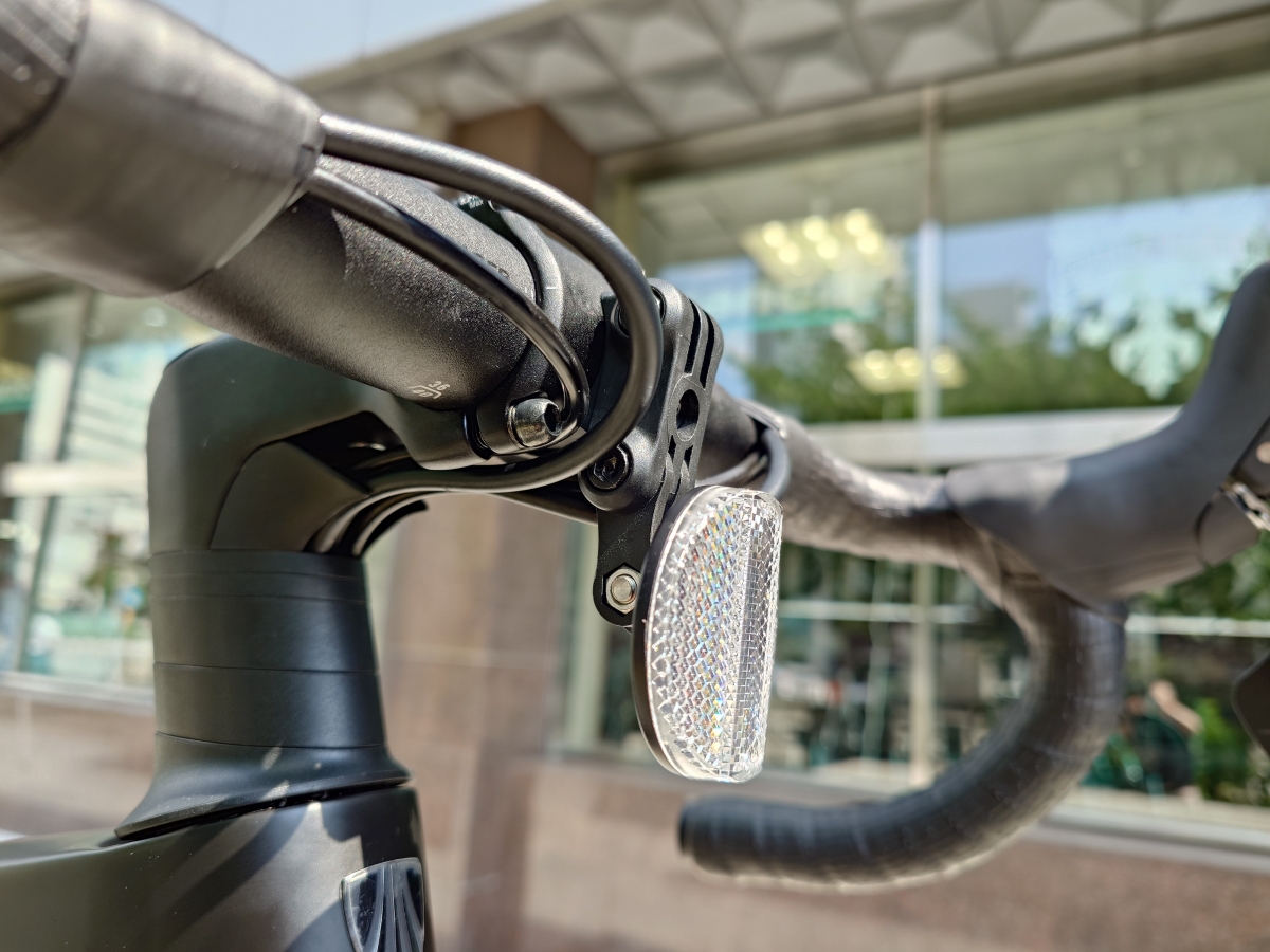 なお、GOPRO規格で出来たブレンダーマウントという反射板やライト、サイコンが取り付けできるマウントがステムに付属しているためシームレスにコックピットにアイテムが装着できます。純正ブランドのパーツからサードパーティ製まで色々試せるところもトレックの親切設計のひとつと言えます。
