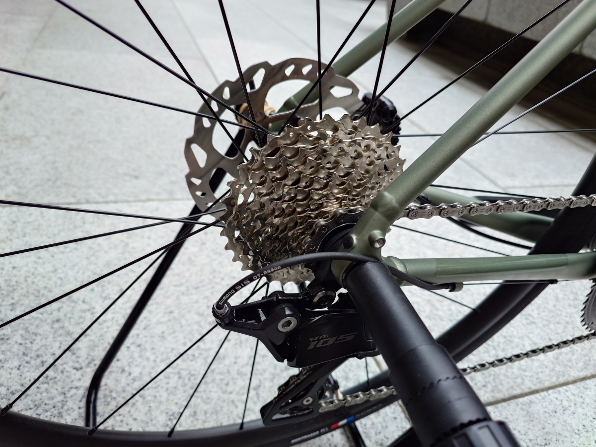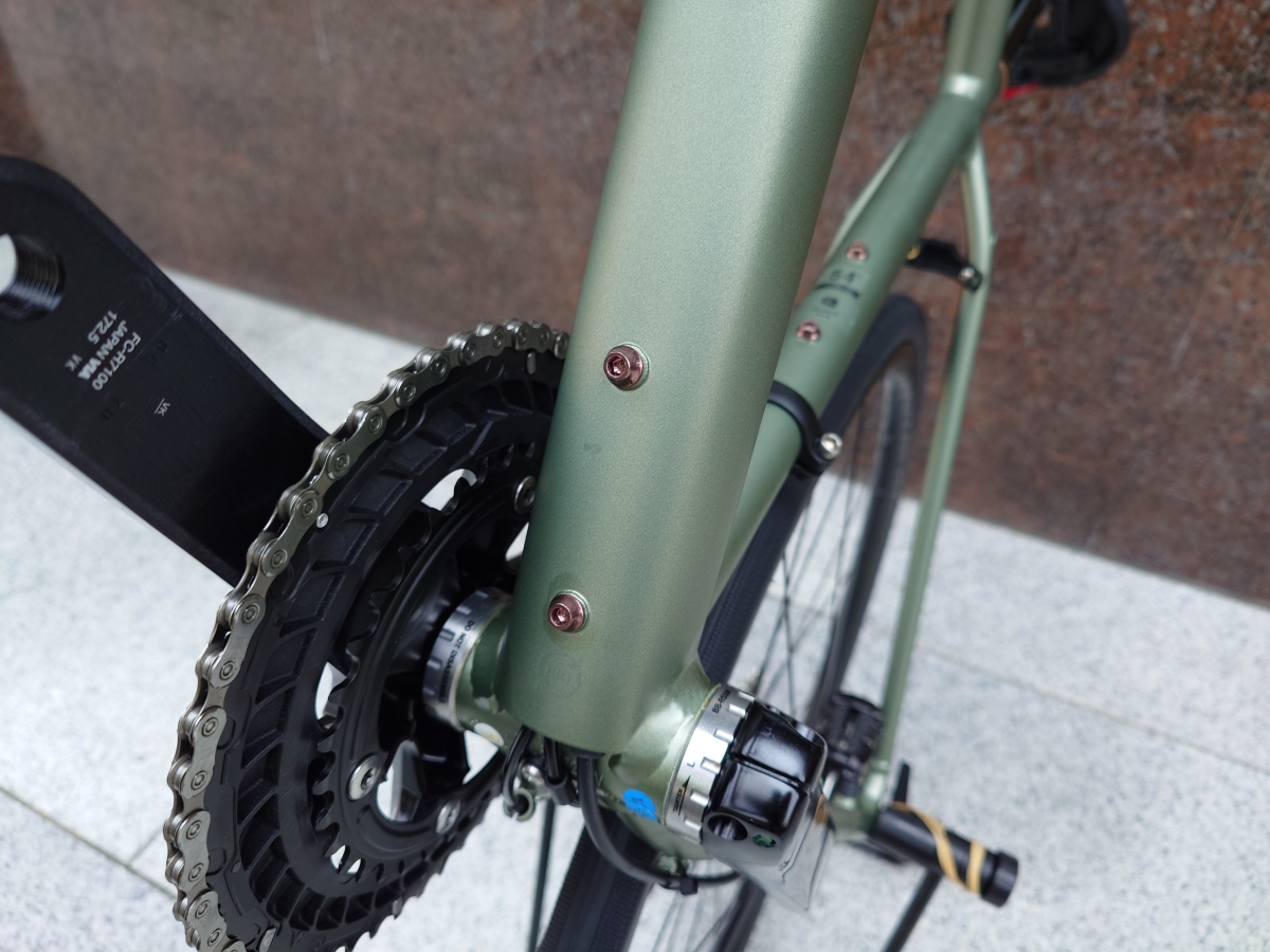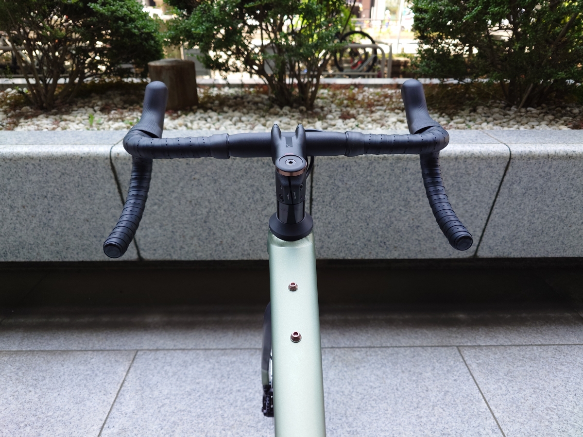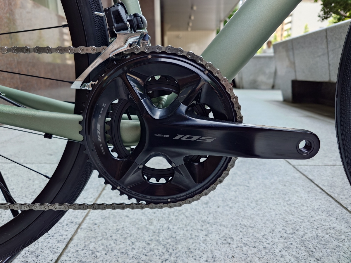 今回ご紹介しているモデルは、AL5で105(12速)のモデルです。なお、クランクまで105のフルスペック。これが26万でおつりがくるレベルの価格になったのは非常に喜ばしいことです。