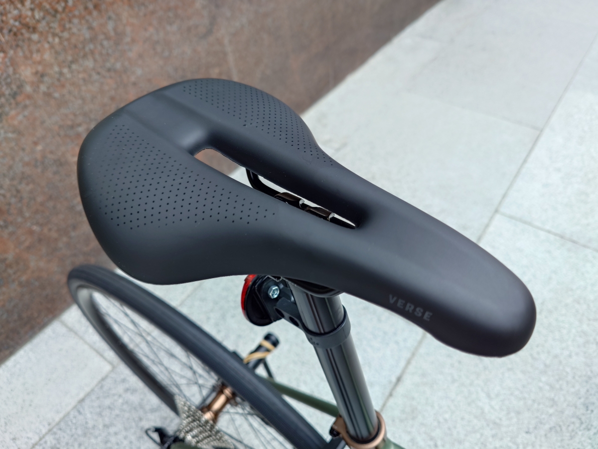 通勤通学の距離ならパッドなしのスタイルでもお尻は痛くならないであろうサドル。これはロングライドでもパッド付パンツと併用すればどこまででも乗っていけるような乗り心地を提供してくれます。