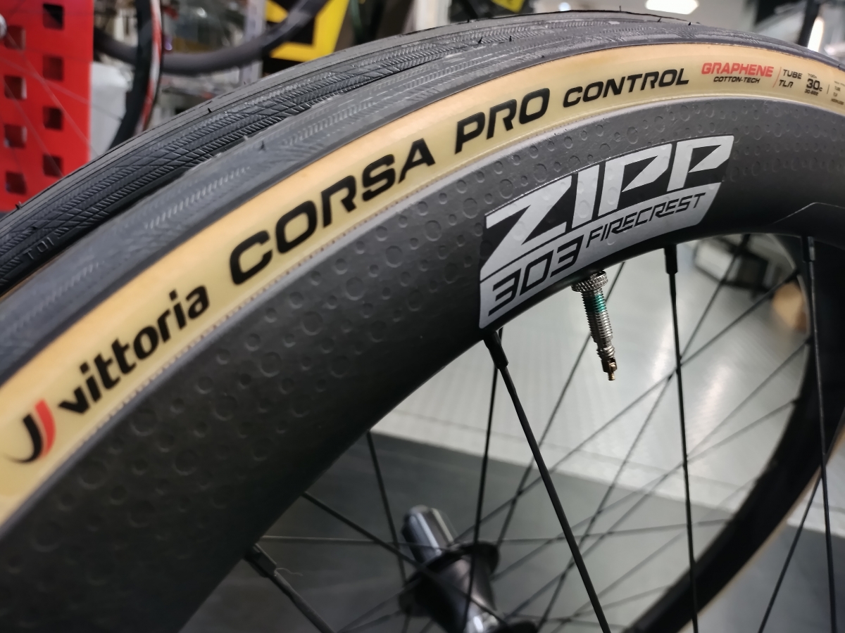 世界のトップレーサーが愛用するCORSAシリーズより、コットンケージらしいしなやかな乗り味はそのままに耐パンク耐性を向上させた「CONTROL」サイズは30Cを装着しているので内幅25mmの本ホイールとの相性は抜群です!!