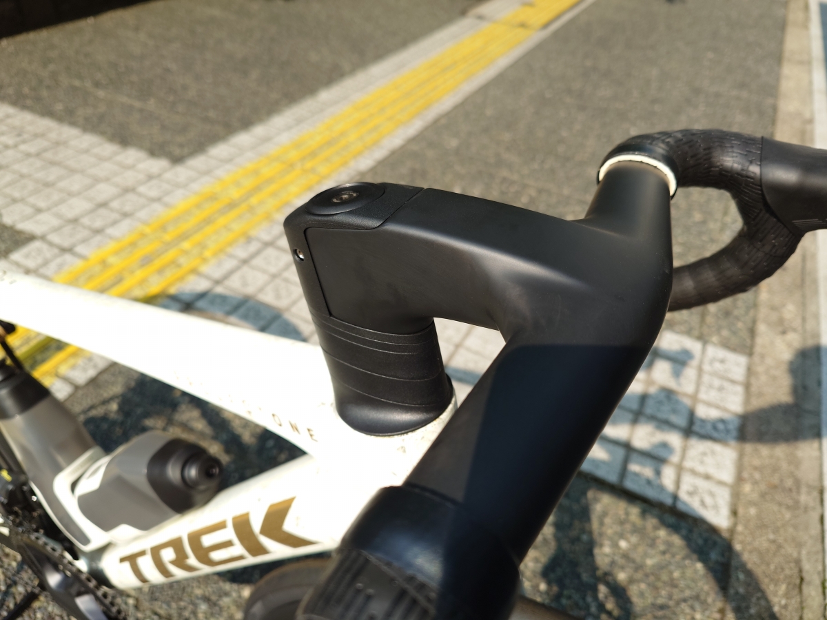 SLRでは一体型ハンドルが最初からついてくるという、軽量で高剛性なメリットはあれど、トライアスロンでの利用などを考えるとわざとハンドルステムをダウングレードしないとDHバーが取り付け出来ないというのは何となく心苦しいです。