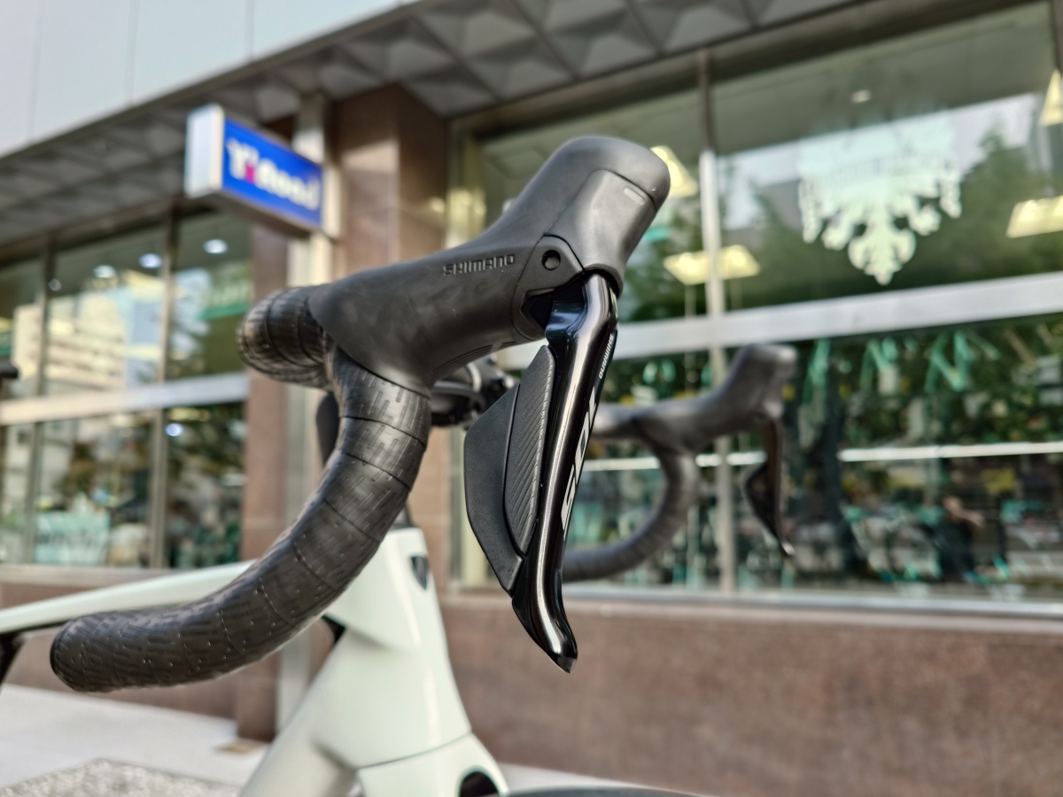 この独特のデザインが格好いいので、それだけでも「買い」です。しかし、SL5のデザインはSL5にしかないためそちらのお色が好みにドンピシャな場合は、SL5をDi2&カーボンホイール化してもやぶさかではないと個人的には思っています。