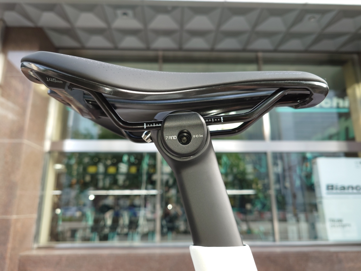 余談ですが、サドルの軽量化を試みる方が比較的多く見受けられますが、このサドルレールクランプはサイズがそれぞれ決められていますので、カーボンレールの製品などに交換する際は事前にご相談ください。